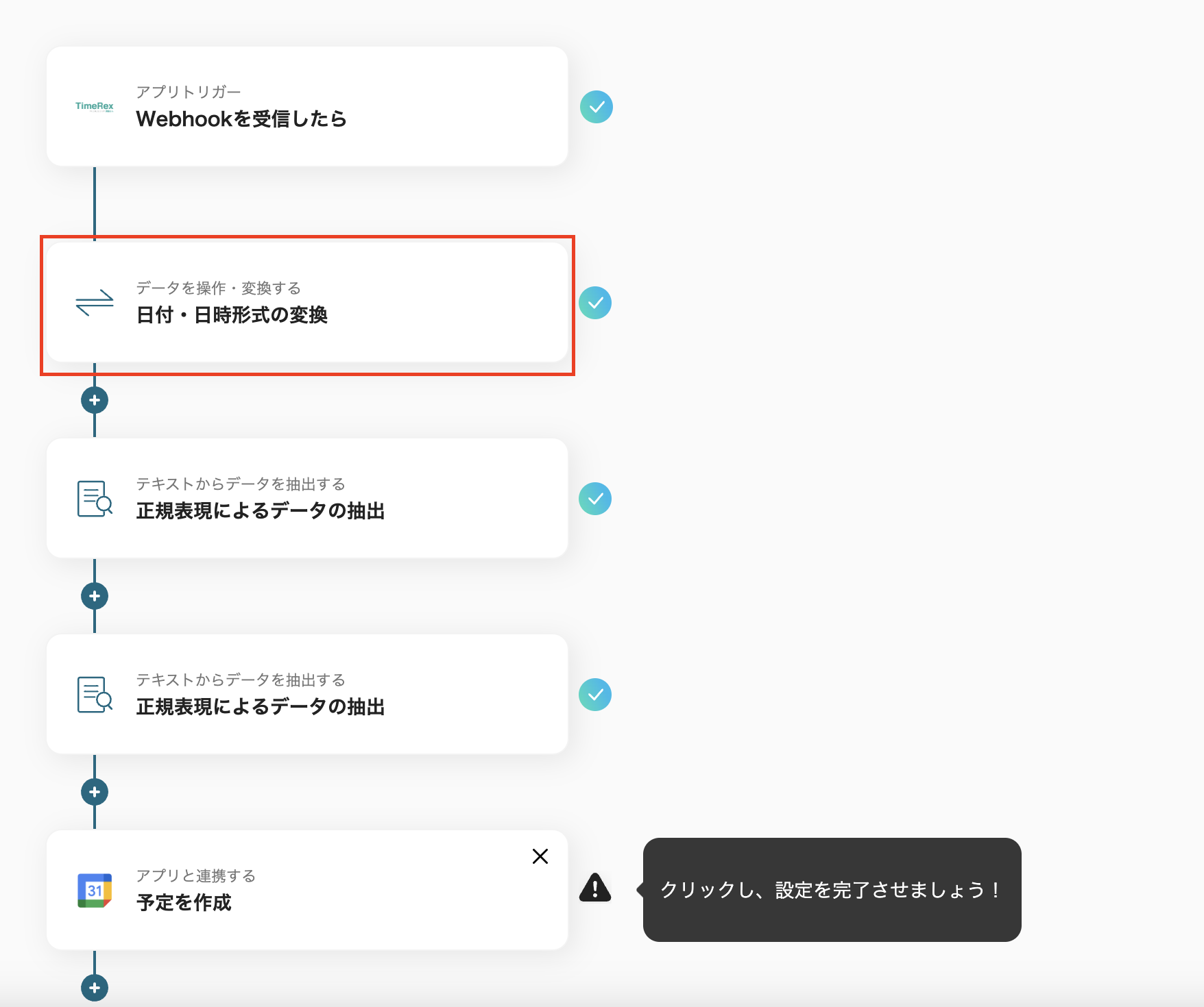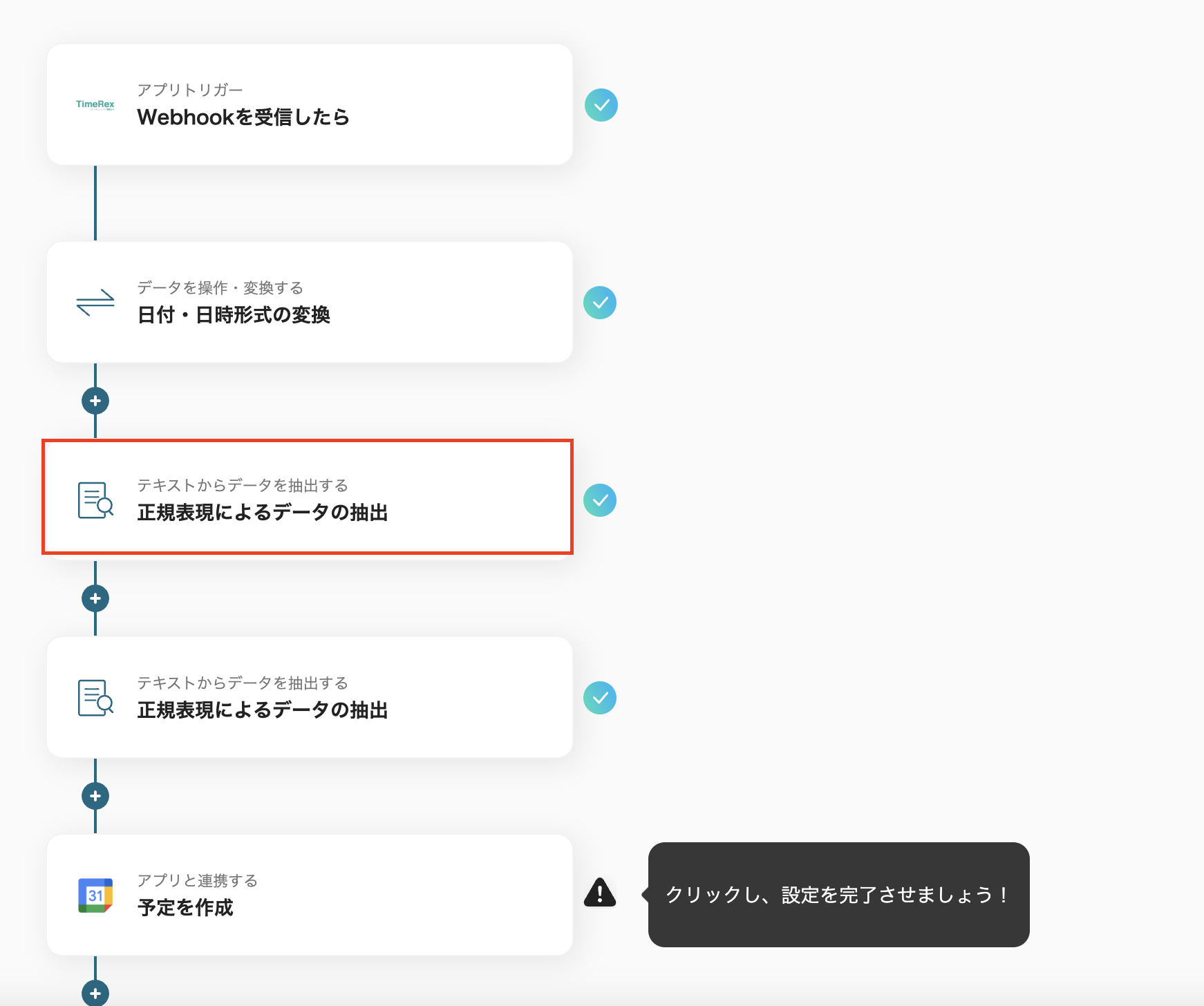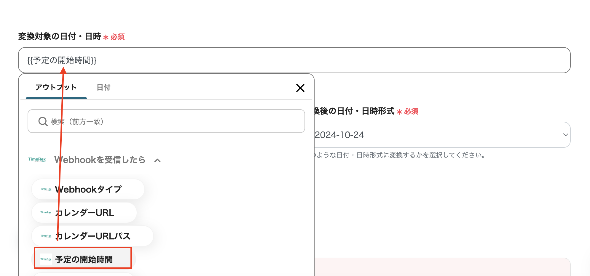 抽出対象には、TimeRexの「予定の開始時間」を取得した値から選択しましょう。