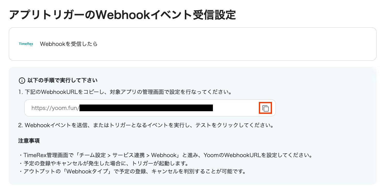 以下の画面が表示されたら、TimeRexの設定画面にWebhook URLを設定しましょう。