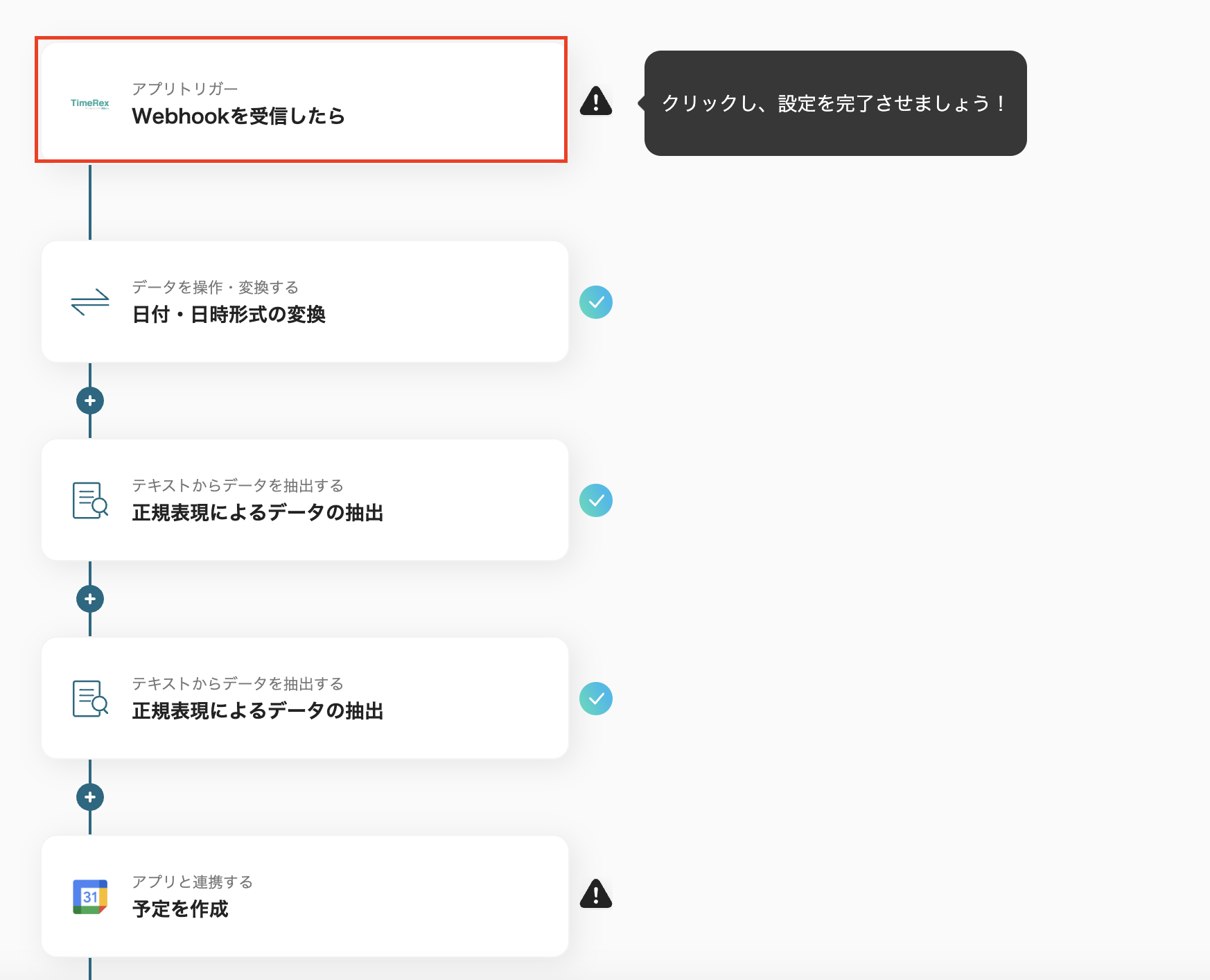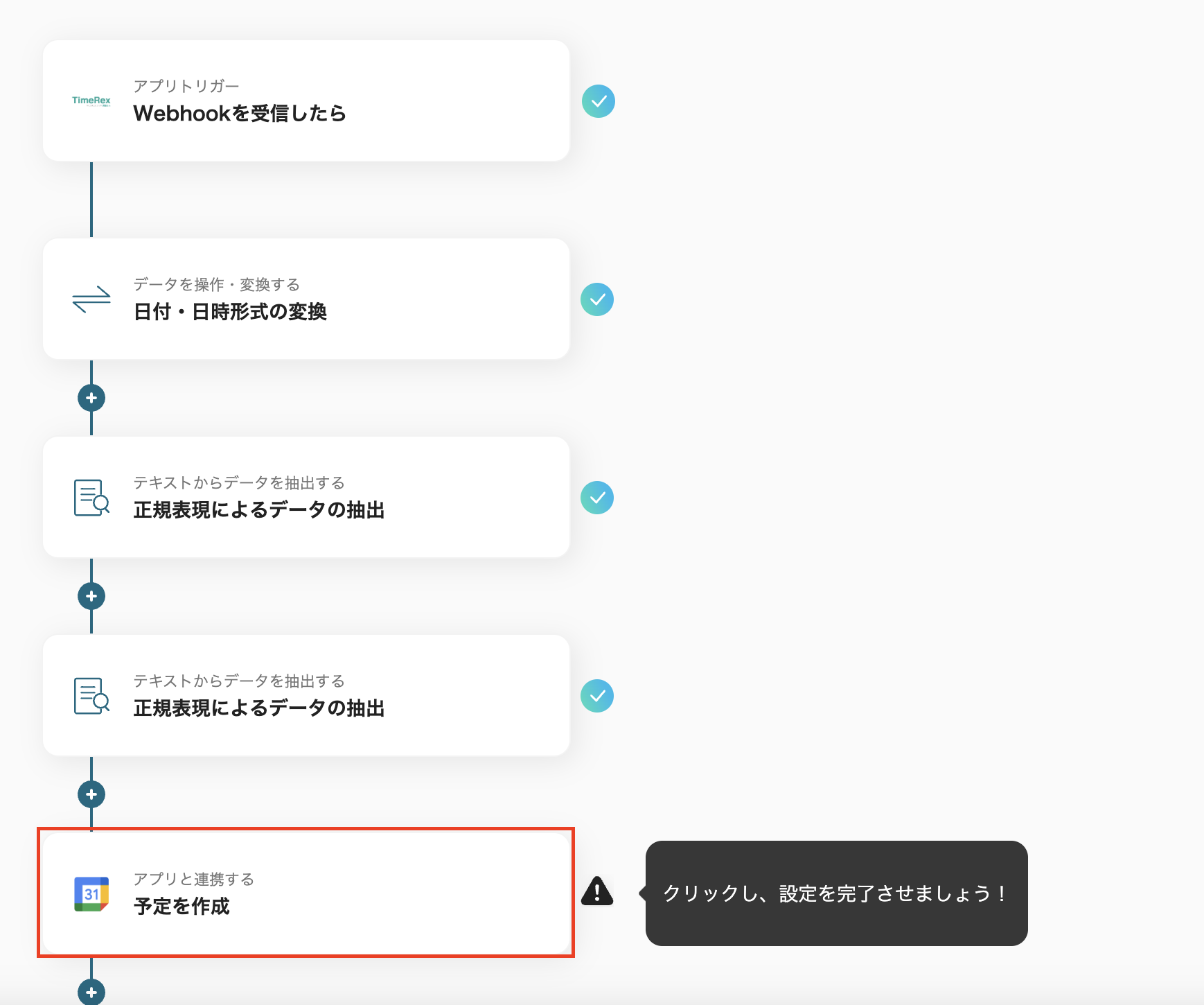 それでは、さっそく実際にTimeRexとGoogleカレンダーを連携したフローを作成してみましょう!