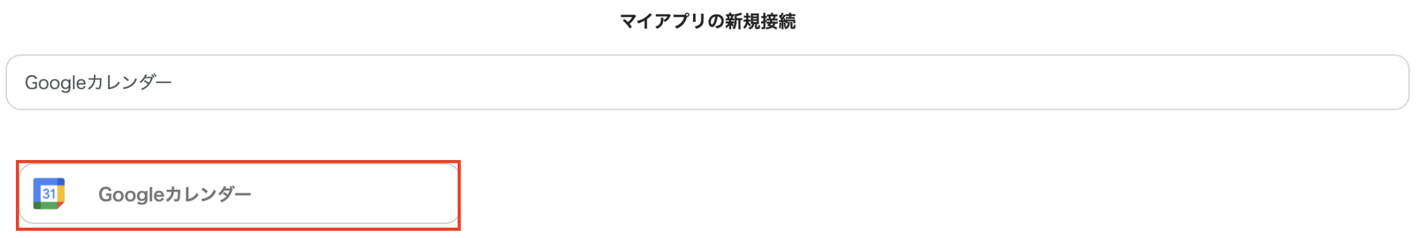 マイアプリの新規接続でGoogleカレンダーを選択します。