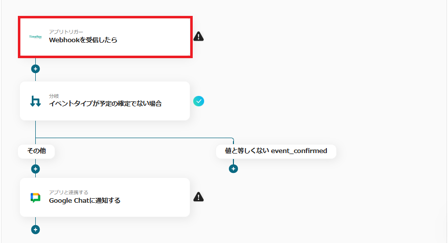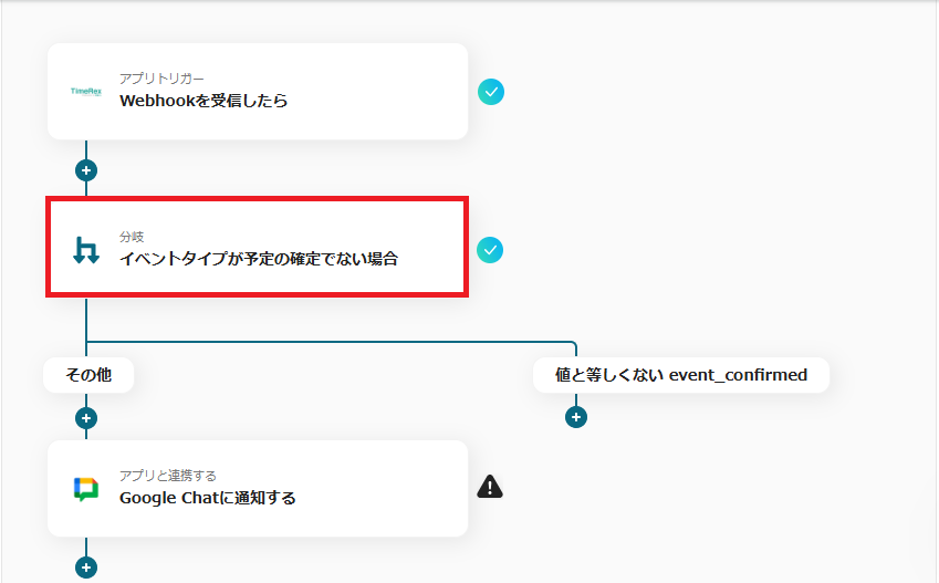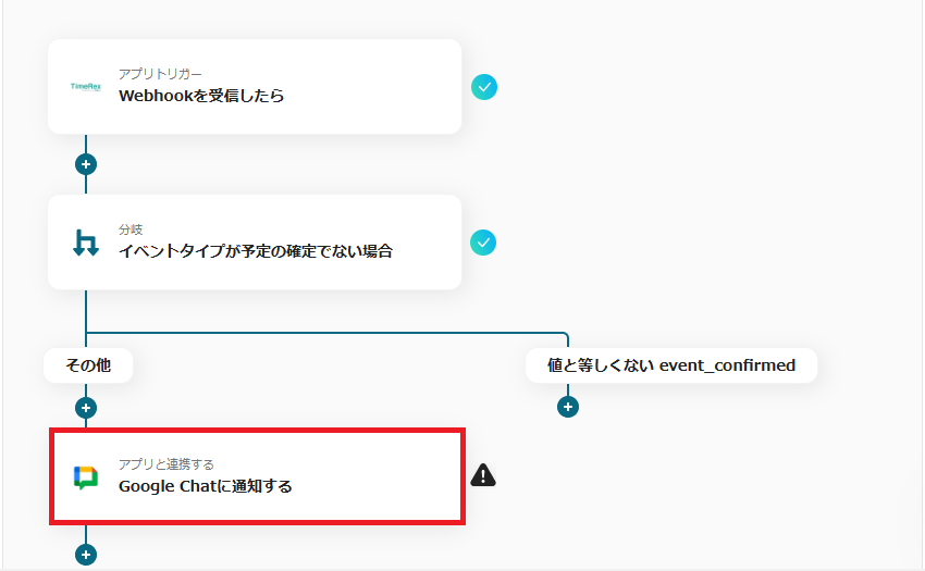 これで「TimeRexで予定が登録されたらGoogle Chatに通知する」フローの完成です。