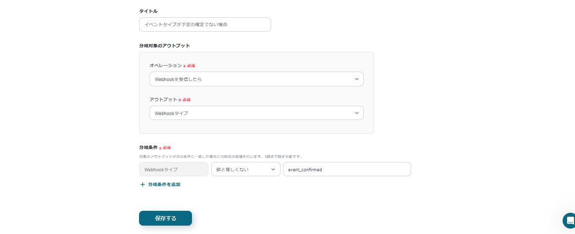 ステップ2で設定したTimeRexのWebhookは予定の登録だけでなく、キャンセルの場合でも起動してしまいます。