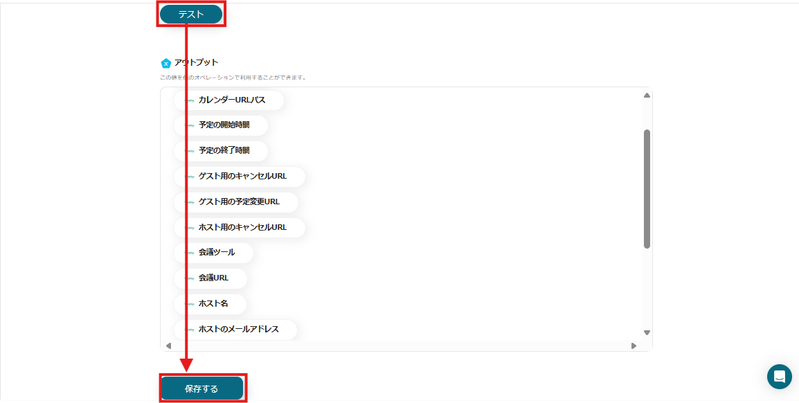 画面下部のテストが成功すると、先ほどTimeRexに登録した予定のアウトプットが表示されます。