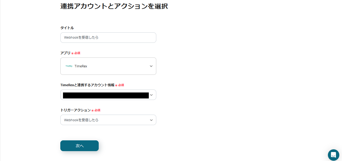 タイトルは編集可能です。トリガーアクションは変更せず「次へ」をクリックしましょう。