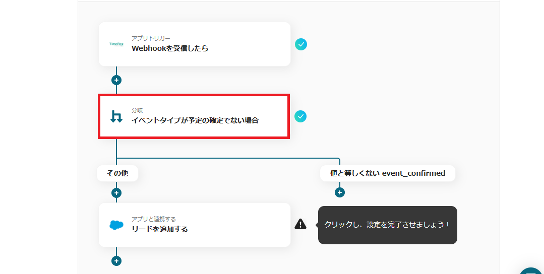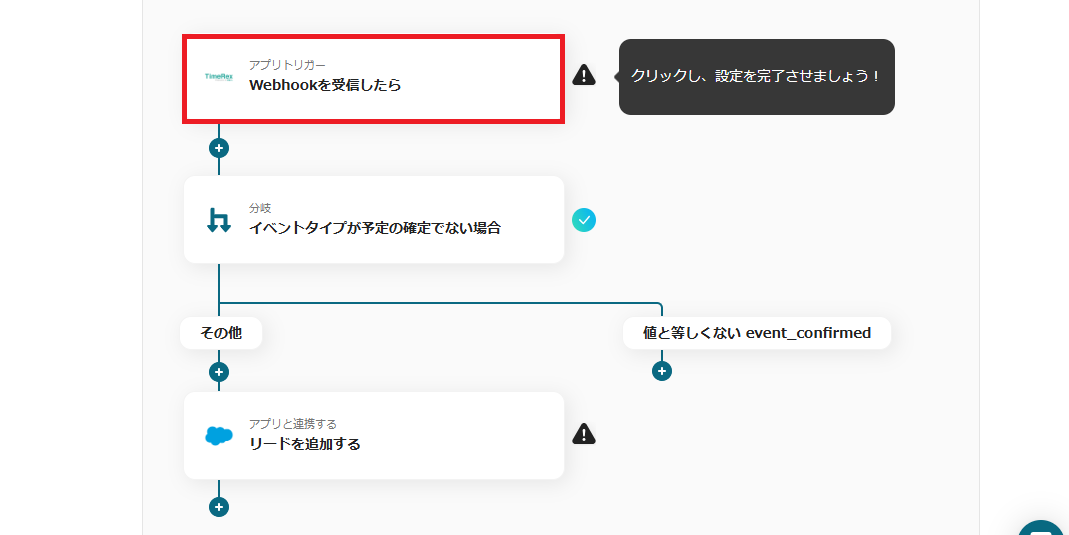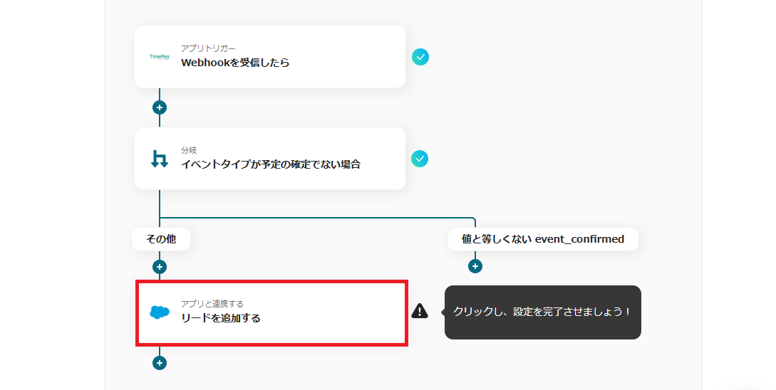 これで「TimeRexで予定が登録されたらSalesforceにリードを追加する」フローの完成です。