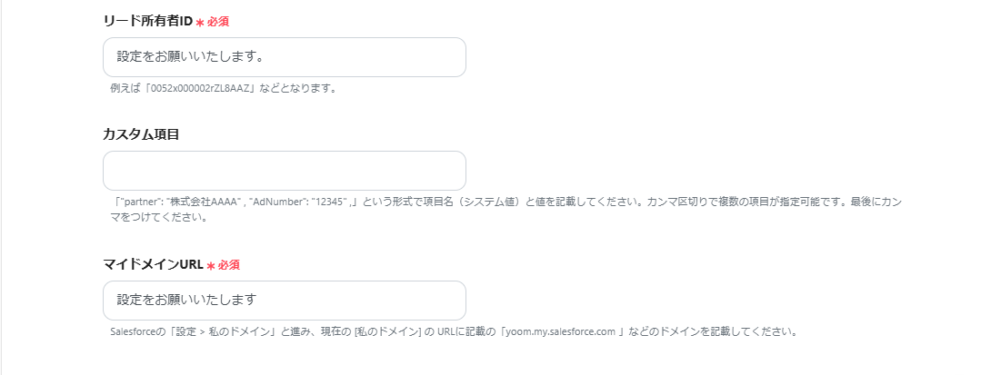 リード所有者IDとマイドメインURLは、枠外の注釈を参考に設定してください。