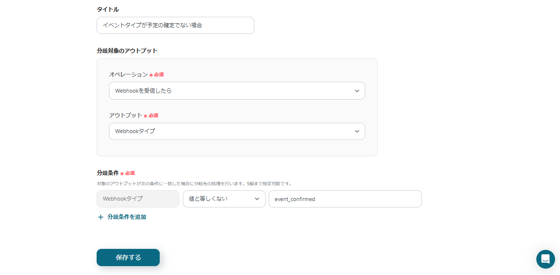 このステップでは、予定の登録以外はフローを進めない条件を設定しています。