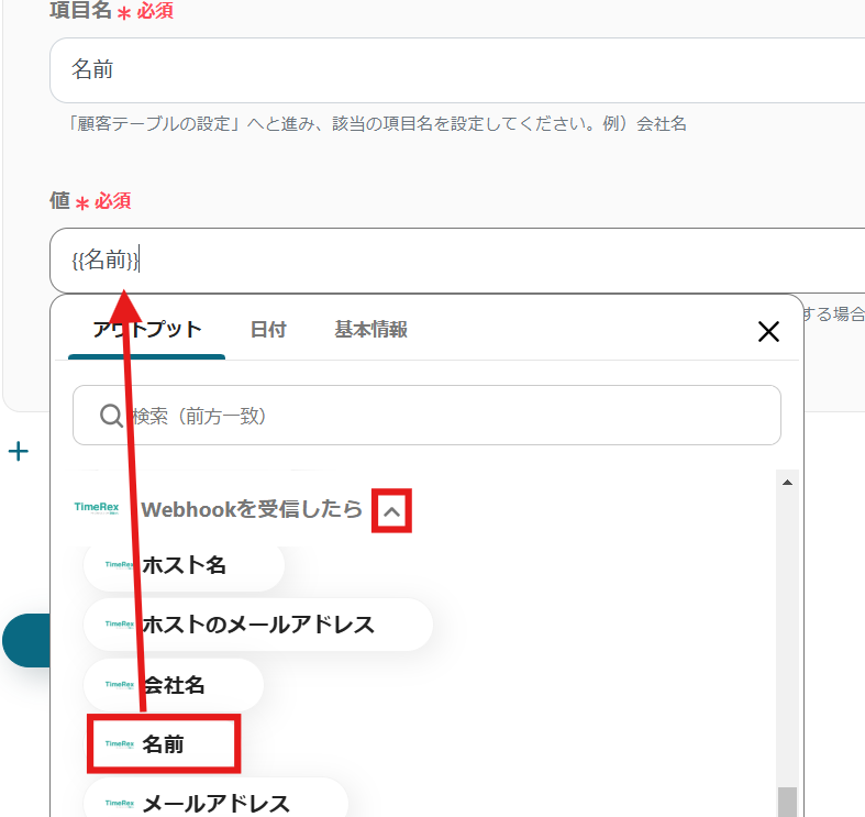 TimeRexで予定が登録されたら、回答内容を用いてサスケに顧客情報を登録する