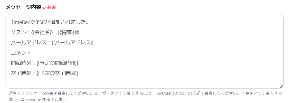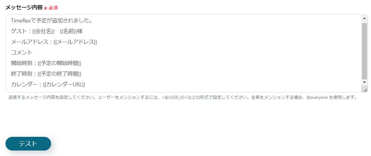 この設定を行うことで、TimeRexにイベントが新規登録されると、Discordへの通知がリアルタイムで送信されるようになります。