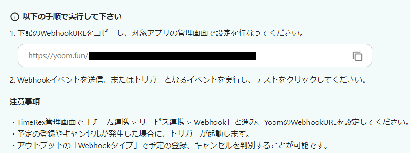 Yoomに戻り、テストボタンを押してください。
