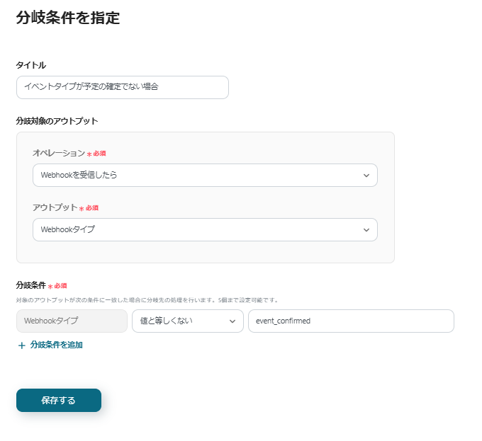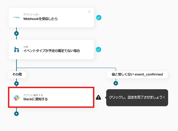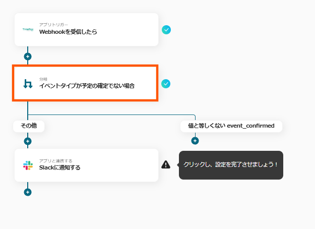 次に、「イベントタイプが予定の確定でない場合」を押して、分岐条件の設定をしていきます。