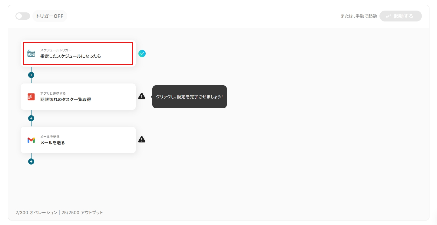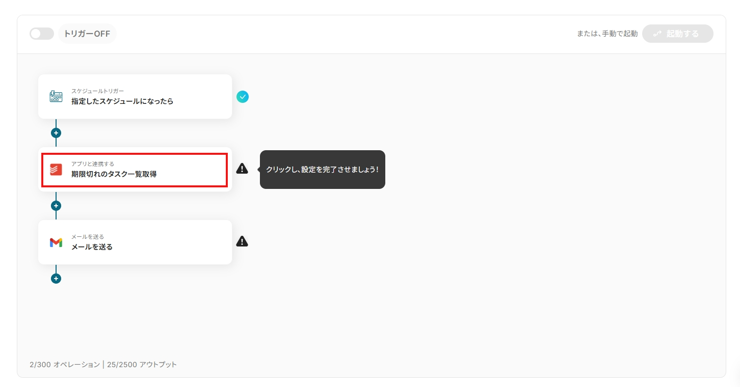 フローの画面に戻り、「期限切れのタスク一覧取得」にチェックマークがついていれば完了です。