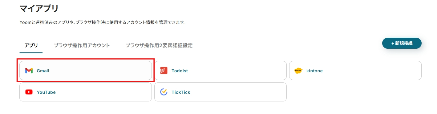 TodoistとGmailをマイアプリに登録し、Yoomと連携させます。