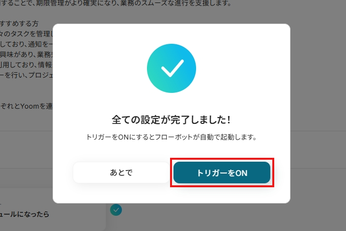この連携により、指定した条件に合ったメールが届くたびにTodoistに自動でタスクが追加され、スムーズな業務管理が可能になります。