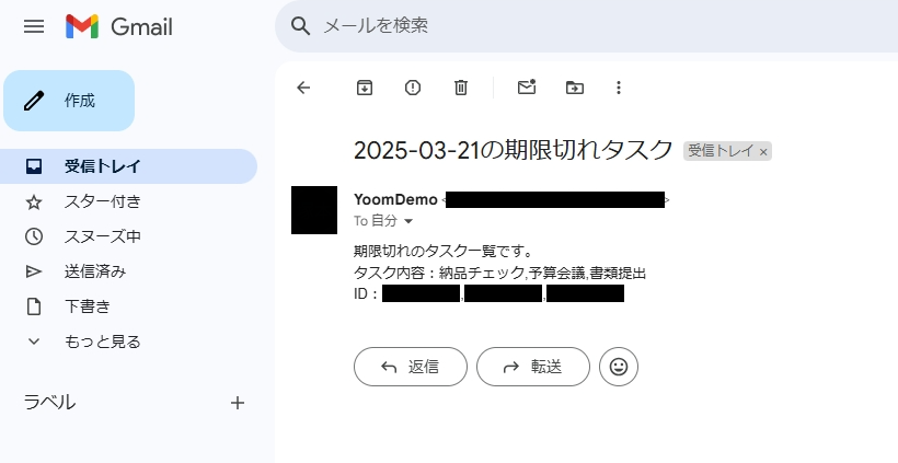 Todoistで設定したタスクの期限が過ぎた際に、自動的にGmailへ通知が送信されるため、重要なタスクの見落としを防ぎます。