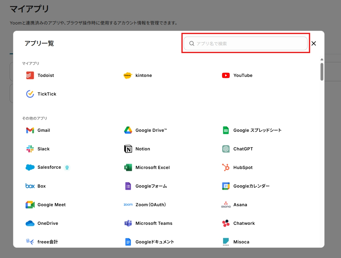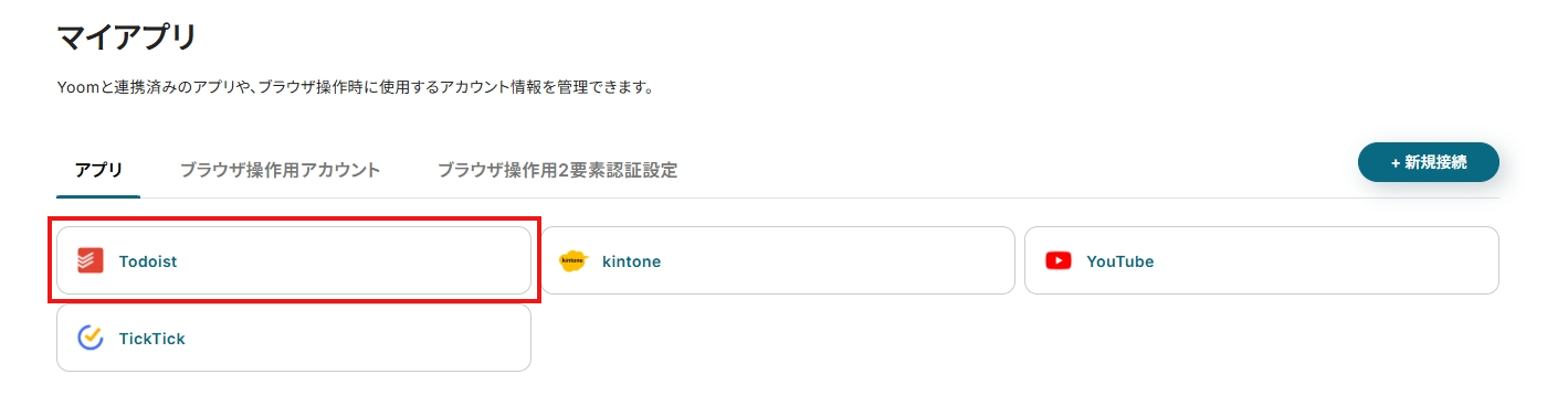 「マイアプリ」の画面に戻り、Todoistが追加されていれば連携は完了です。