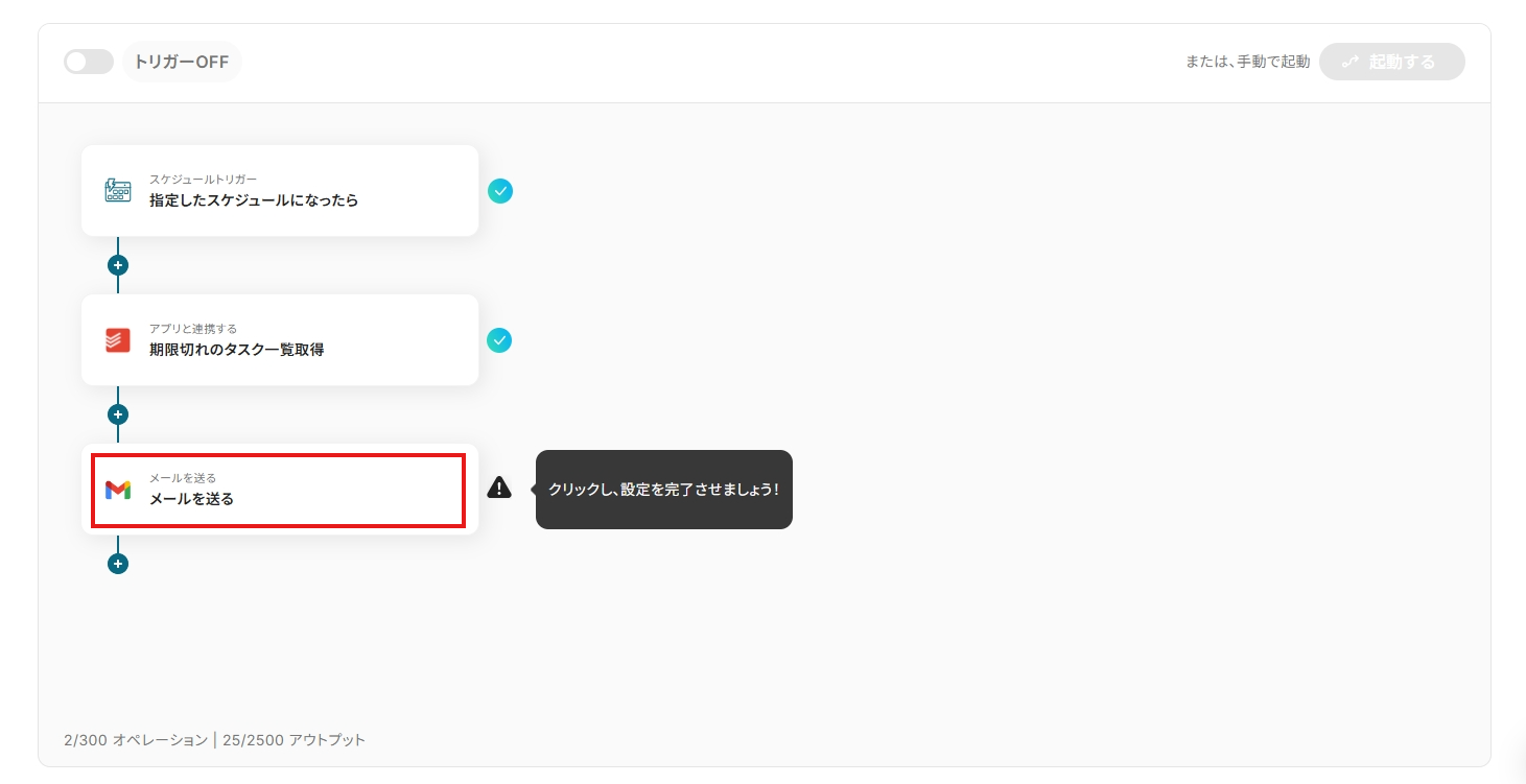 最後に、ステップ4で取得した期限切れのタスク一覧をGmailに通知する設定を行います。