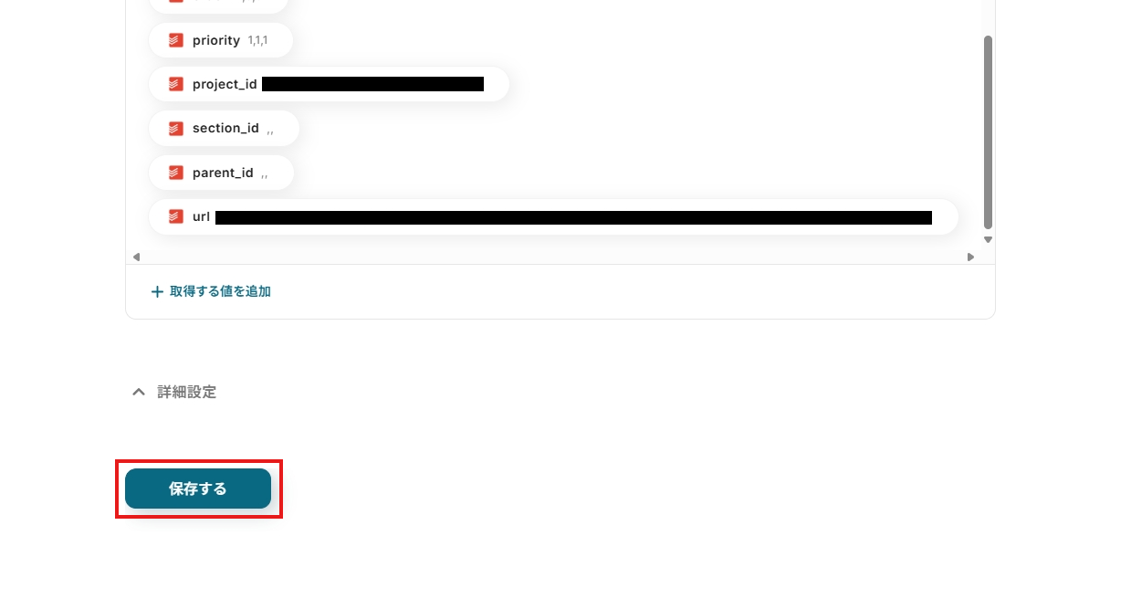次に、Todoistから期限切れのタスク一覧を取得する設定を行います。