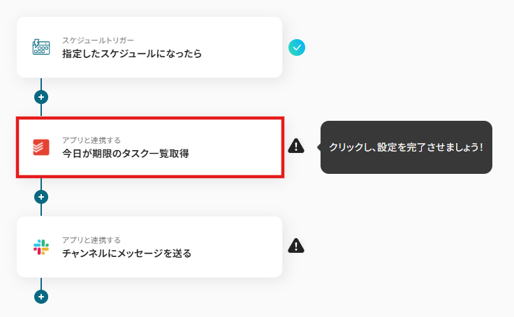 こちらは、期限切れの全てのタスクを取得し、Slackに通知するフローです!
