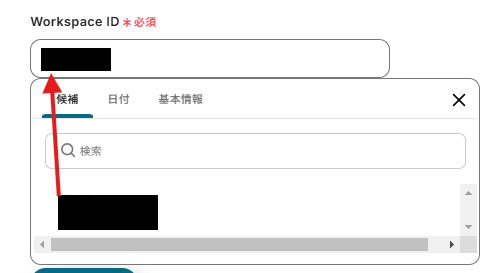 3.「Workspace ID」は、入力欄をクリックして表示される候補から選択してください。