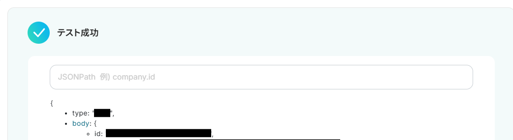 テストが成功すると以下のような「テスト成功」の画像が表示されます。
