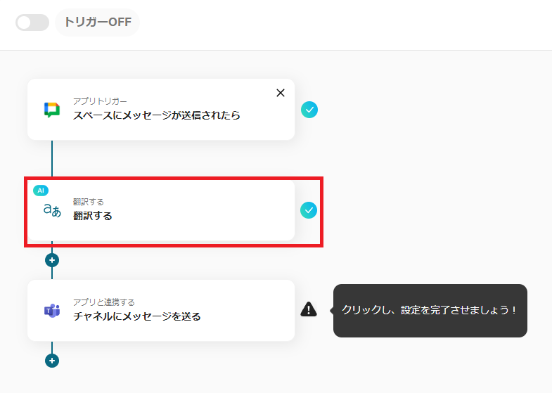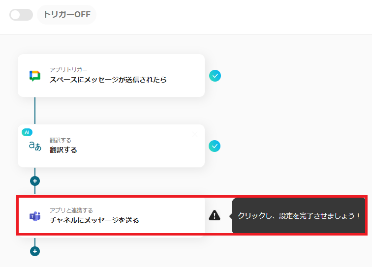 これで「Google Chatで投稿されたメッセージを翻訳して、翻訳版をMicrosoft Teamsに投稿する」の設定はすべて完了になります。