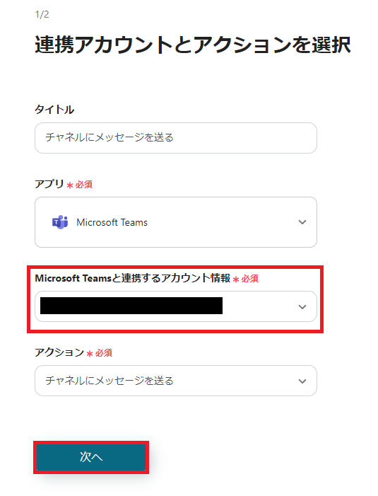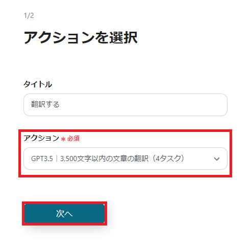 「アクション」の項目を任意で設定したら「次へ」を押してください。