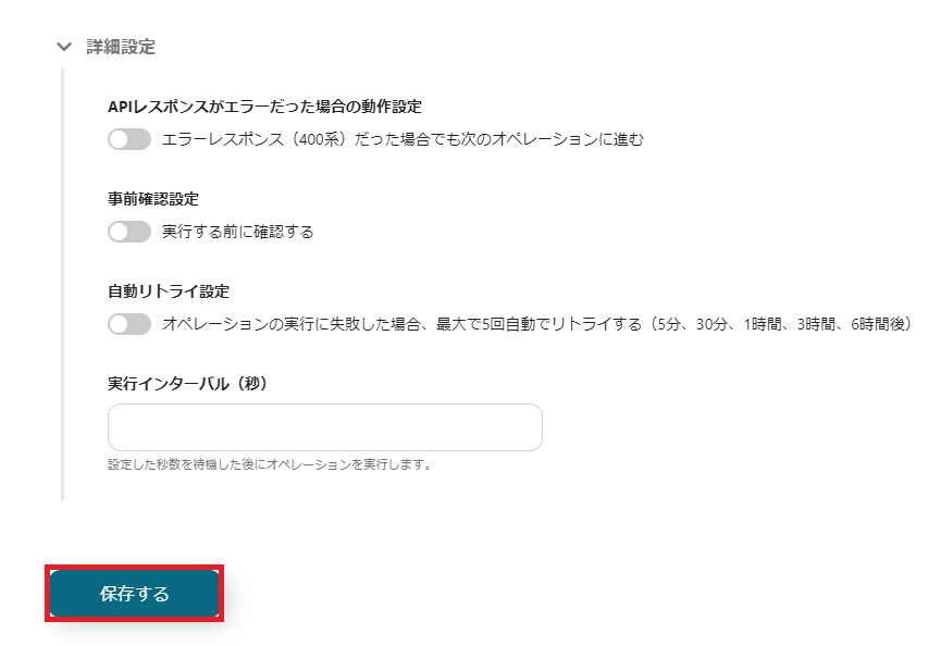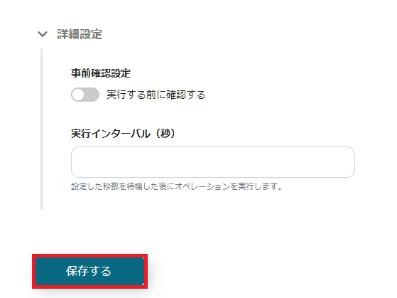 ここでは実行前の確認設定やインターバルの設定ができます。
