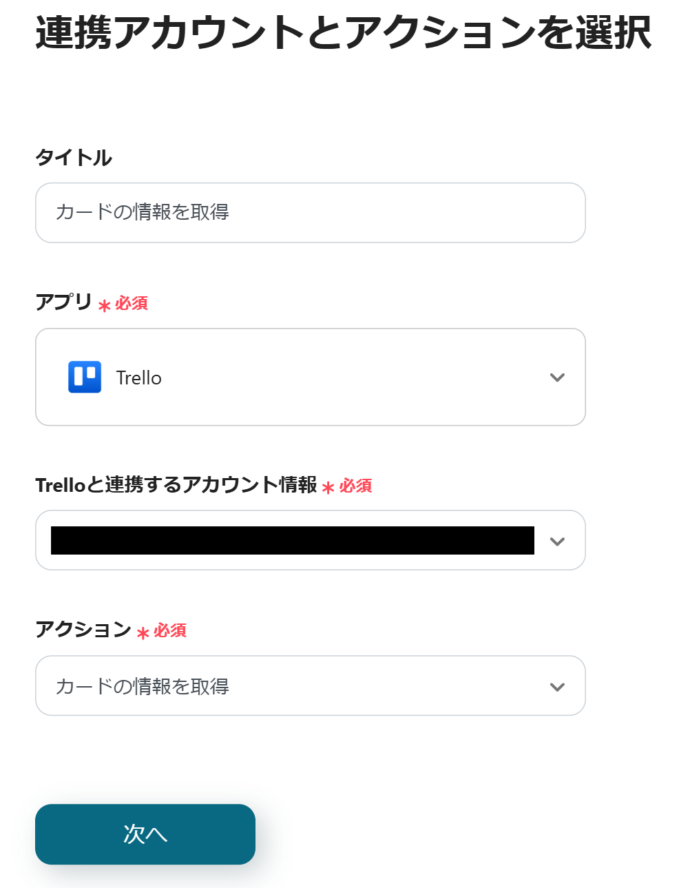 続いて、Trelloでカード情報を取得する設定を行うため、「カードの情報を取得」をクリックしてください。