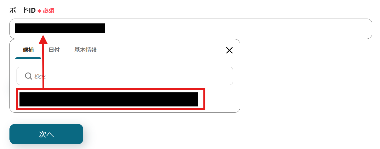次に、「ボードID」を候補から選択します。