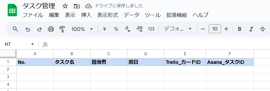 4.Google スプレッドシートでタスクを追加する項目を設定し、テストを行います。