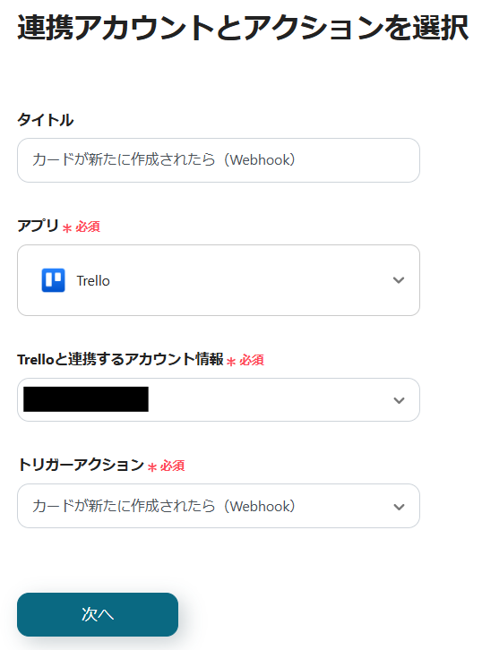 3.Trelloと連携するアカウントを確認し、「次へ」をクリックします。