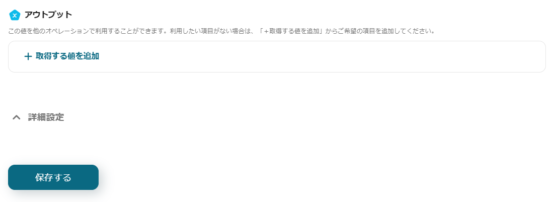 ※AsanaやGoogle スプレッドシートに登録したい情報が表示されていない場合は、JSON PATHを利用してアウトプットに追加します。追加方法は、こちらのヘルプページで解説しています。
