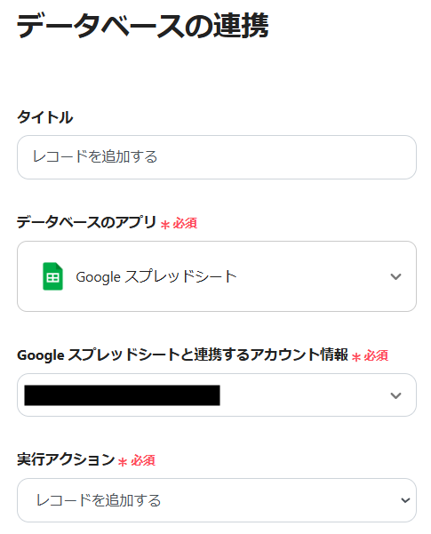 最後に、Google スプレッドシートにタスクを追加する設定を行います。