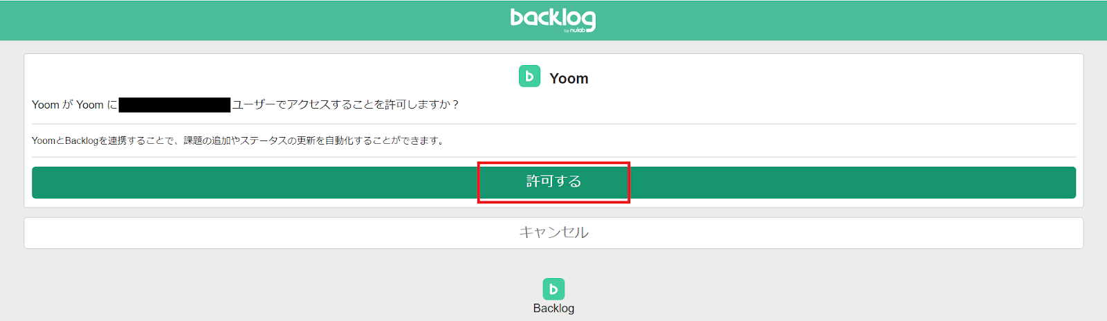 Yoomの画面に戻ったらBacklogのマイアプリの登録が完了しました。