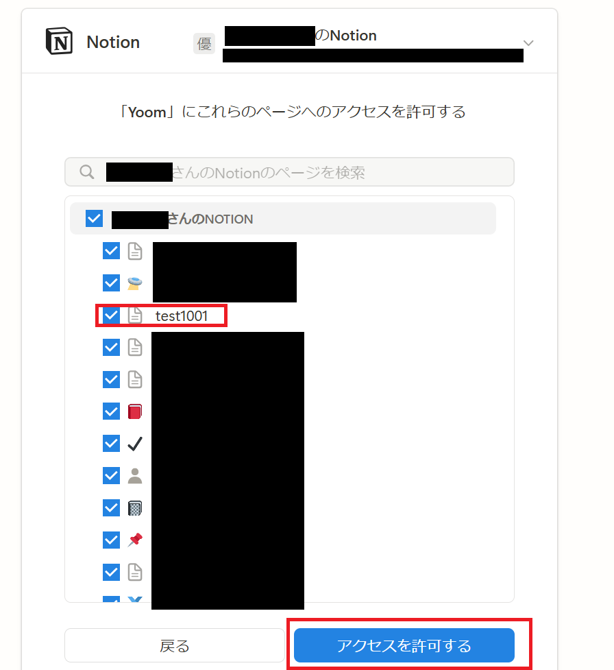 ログインが完了したら、アクセスしたいページにチェックすることを忘れないでください。(後のデータベース連携で、追加したいページが反映されなくなってしまいます。)