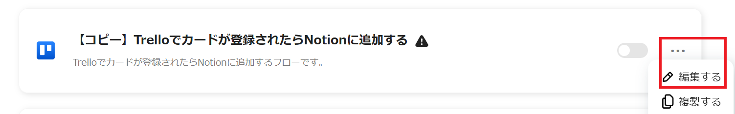 Trelloでカードが登録されたらNotionに追加するフローです。