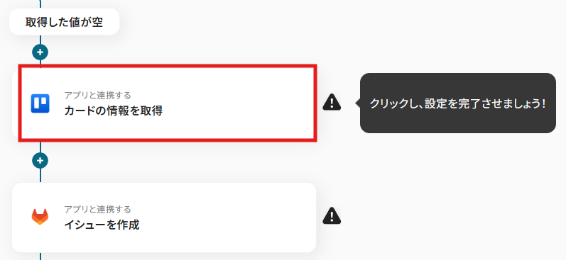- 最後に、オペレーションでGitLabの「イシューを作成」アクションを設定し、取得したTrelloの情報を基にイシューを自動で作成します