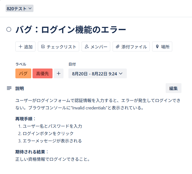 A:コメントは直接連携することはできませんが、Trelloカードの内容部分にコメントを加筆することで、その内容をイシュー作成時に反映させることが可能です!