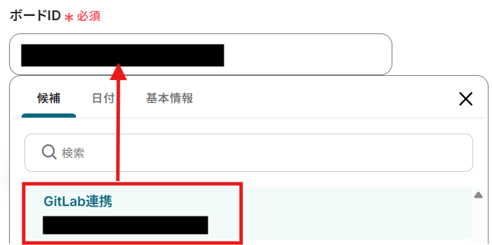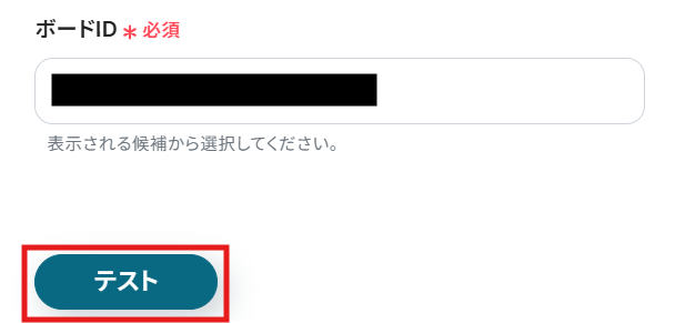 ここから、連携したいボードを選択してください。選択すると、ボードIDが自動で反映されます。
