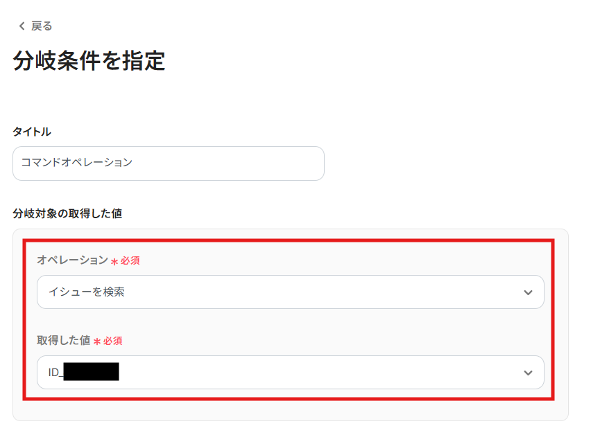 - 次に、分岐機能を使用し、既存イシューの有無に応じてその後の処理を分岐させます