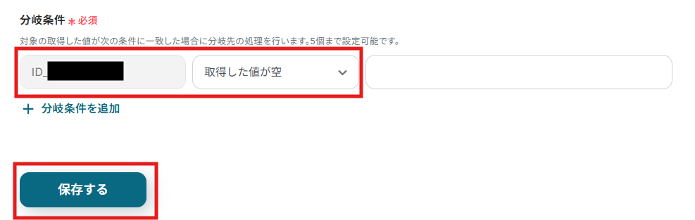 - 分岐はミニプラン以上のプランでご利用いただける機能(オペレーション)となっております。フリープランの場合は設定しているフローボットのオペレーションはエラーとなりますので、ご注意ください。