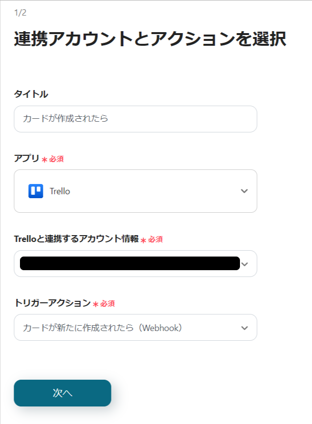 タイトルとトリガーアクションはそのままの設定で「次へ」をクリックしてください。