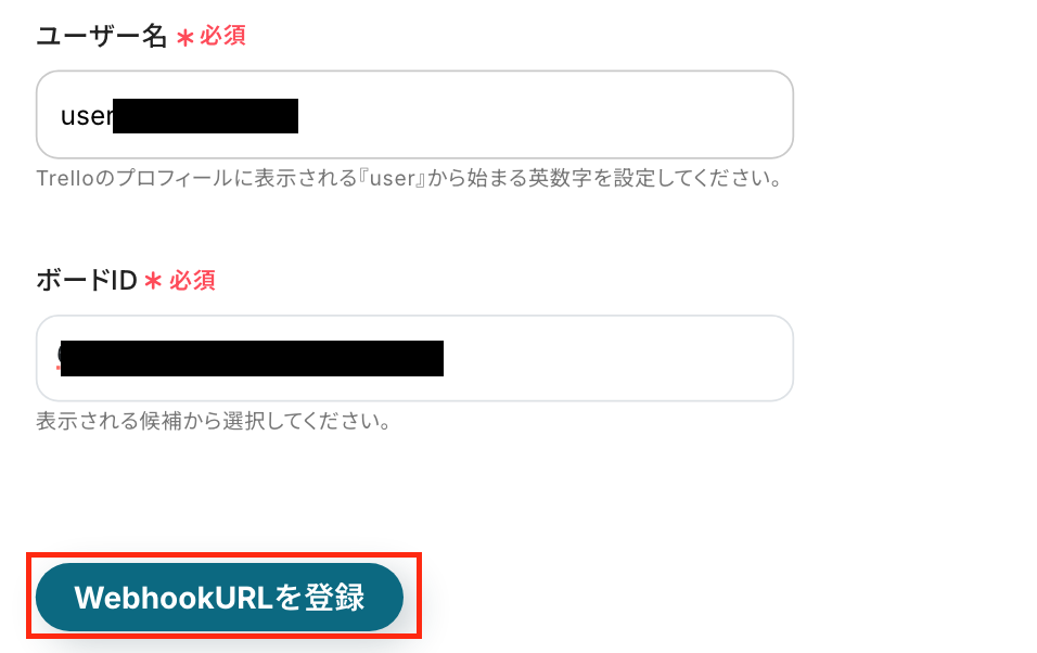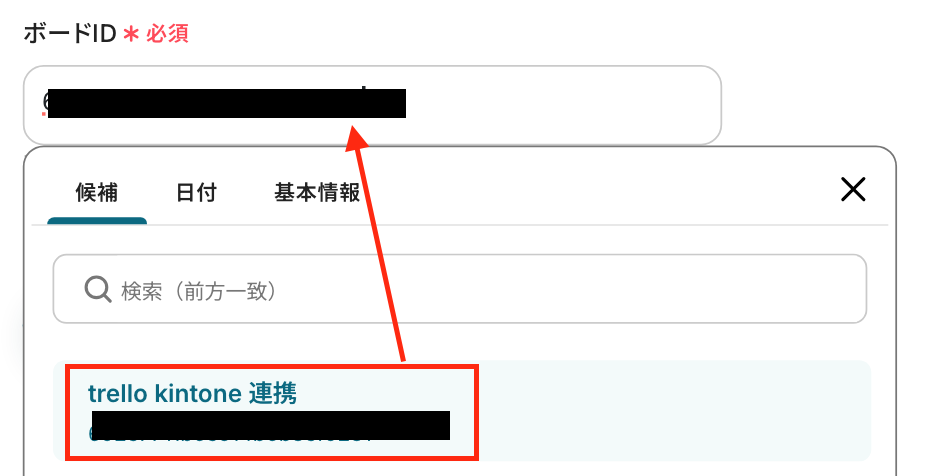 まずは「ボードID」はステップ3と同じものを、入力欄下の注釈を参照して直接入力します。