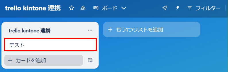 テスト操作のため、先ほど作成したTrelloのボードにカードを作成してください。