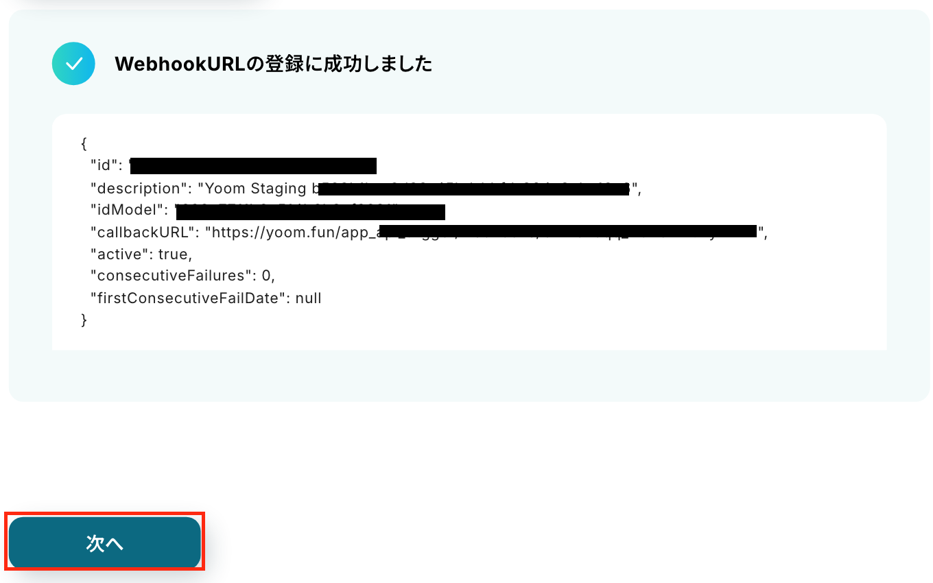 Trelloのボード準備ができたら、Yoom画面に戻り、「Webhook URLを登録」を押します。