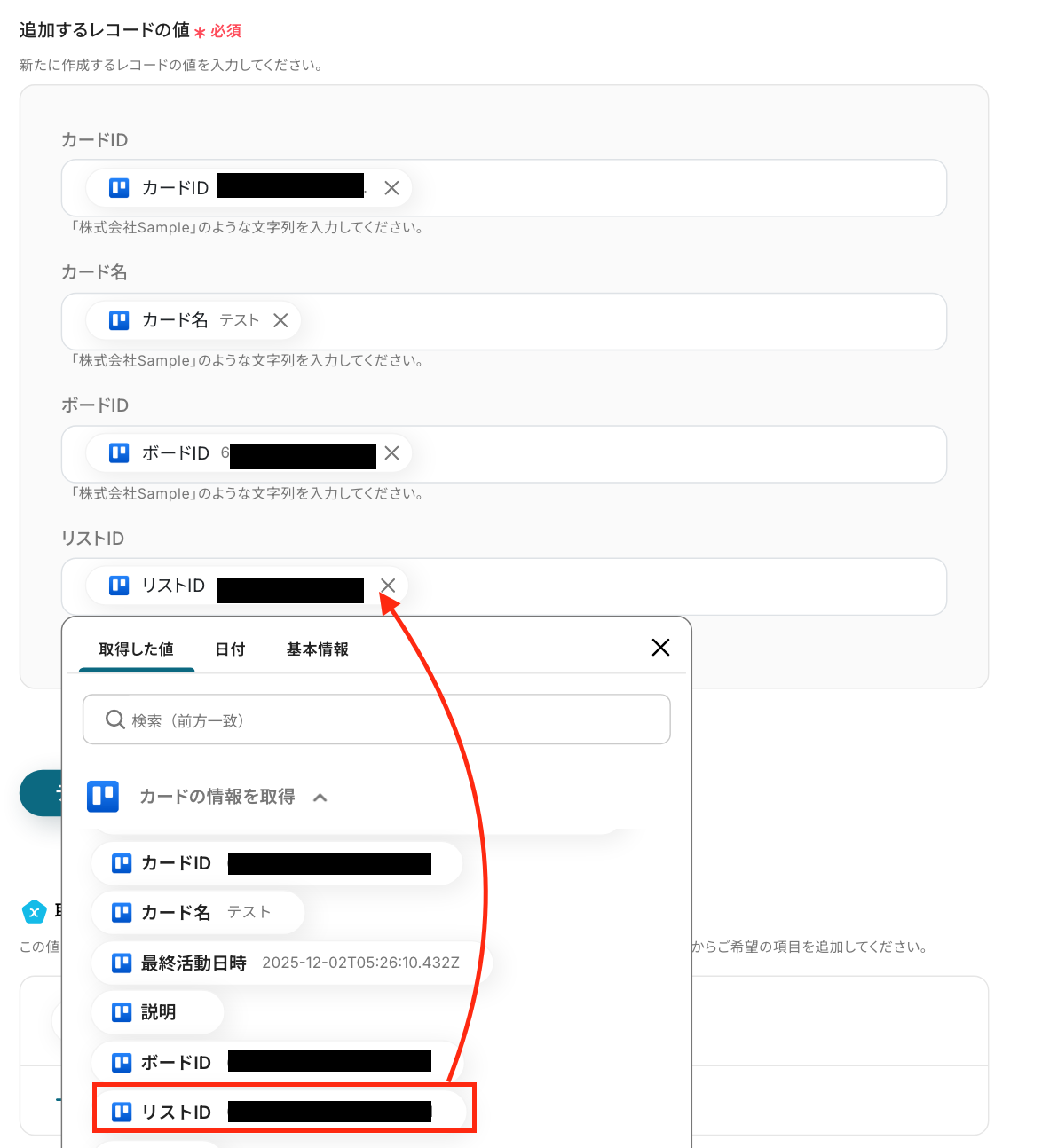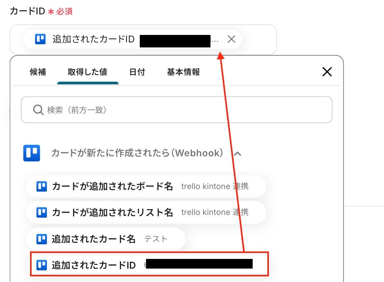 ステップ4:Trelloのカードの情報を取得する設定