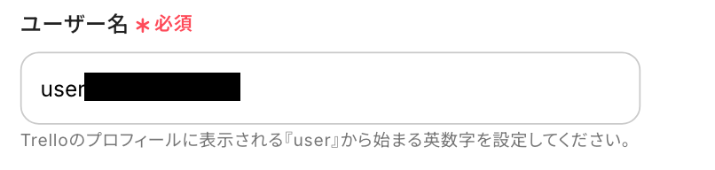 「ユーザー名」は入力欄下の注釈を参照して入力してください。