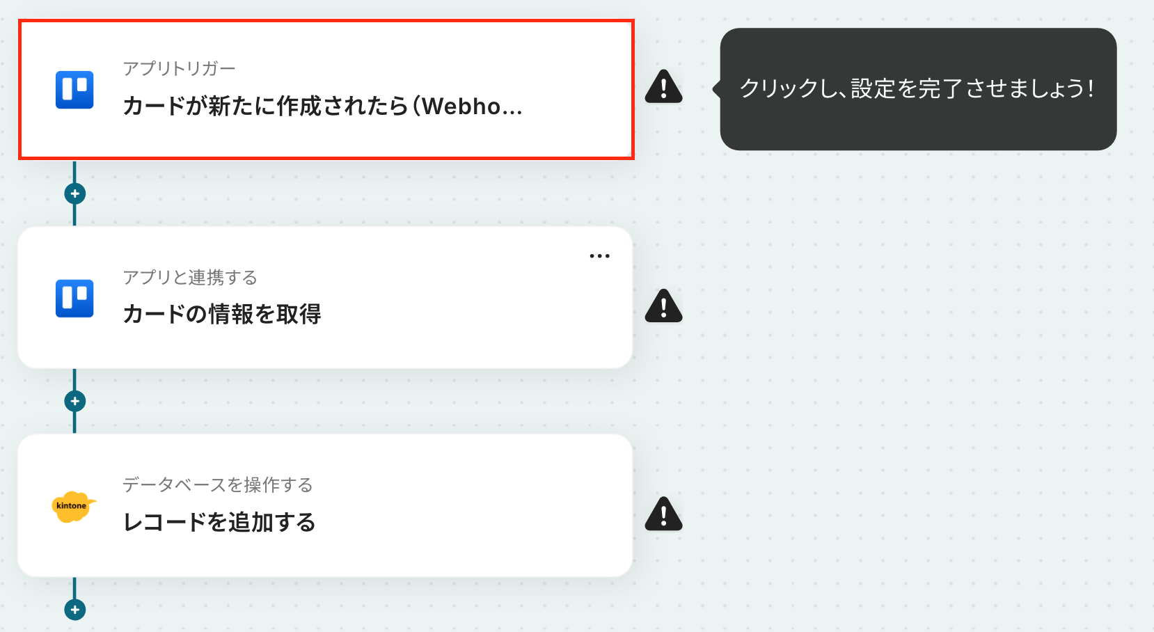 今回は、Trelloに新規カードが作成されたら、kintoneにレコードを登録するフローを作成していきます!