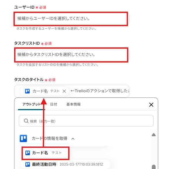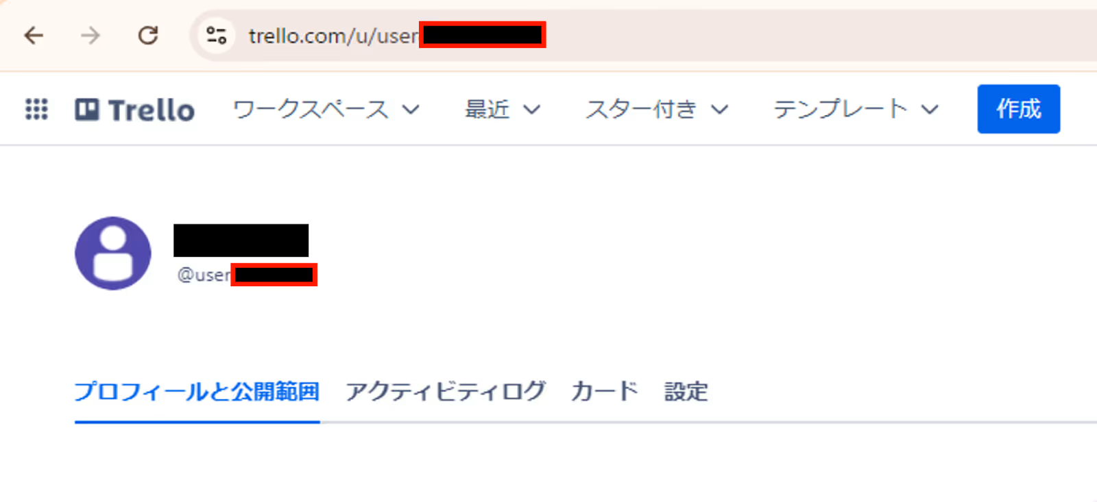 - 「ユーザー名」→Trelloのプロフィールに表示される『user』から始まる12桁の英数字を設定